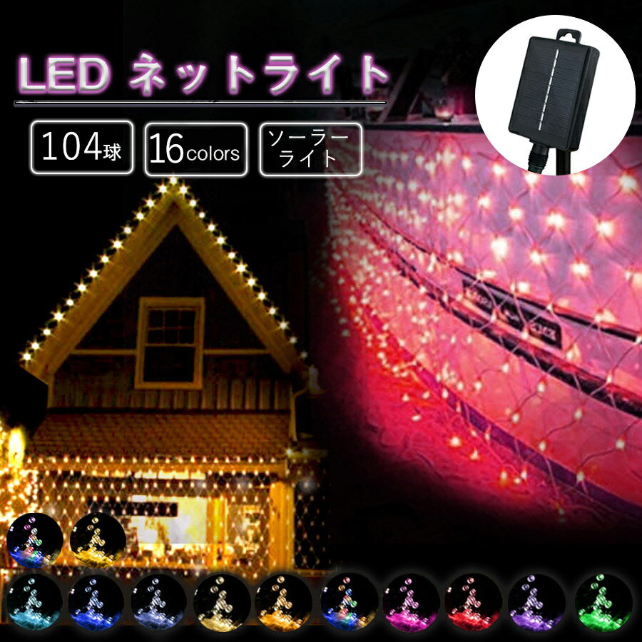 ソーラーイルミネーション ネット ネットライト 104球 ソーラー ソーラーイルミネーションライト 屋外 イルミネーション クリスマス 約 100球【送料無料】カーテンライト ソーラーカーテンライト